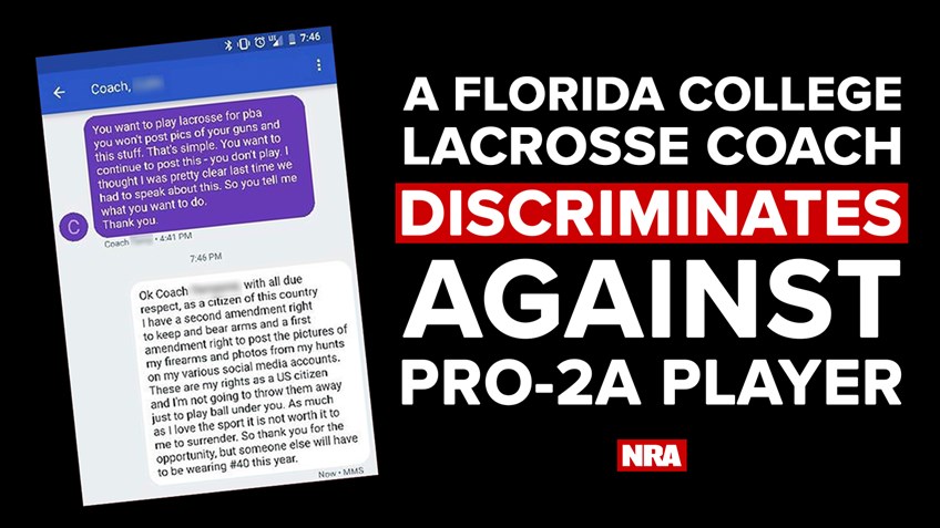 The Palm Beach Atlantic University lacrosse coach seems to think that because social media posts about hunting—or guns in general—go against his grain, he can impose his belief system on his players. After the athlete, with the social media moniker of duckmanscholl on Instagram, made public one of his posts, his coach responded via text message: “You want to play lacrosse for PBA [Palm Beach Atlantic University], you won’t post pics of your guns and stuff. That’s simple. You want to continue to post this—you don’t play.”