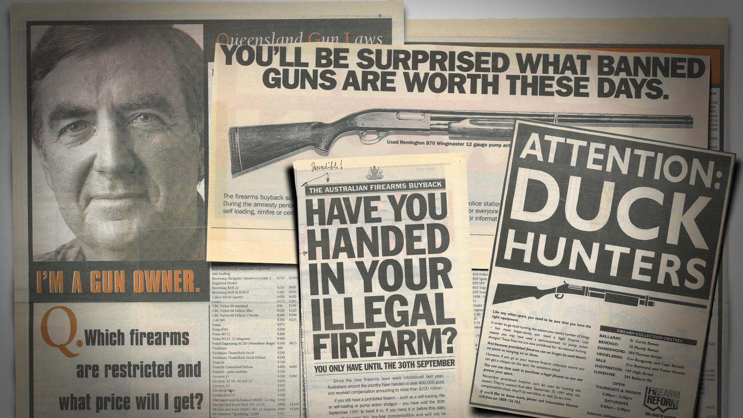These are actual Australian ads (above) demanding hunters turn in their guns under threat of criminal prosecution.