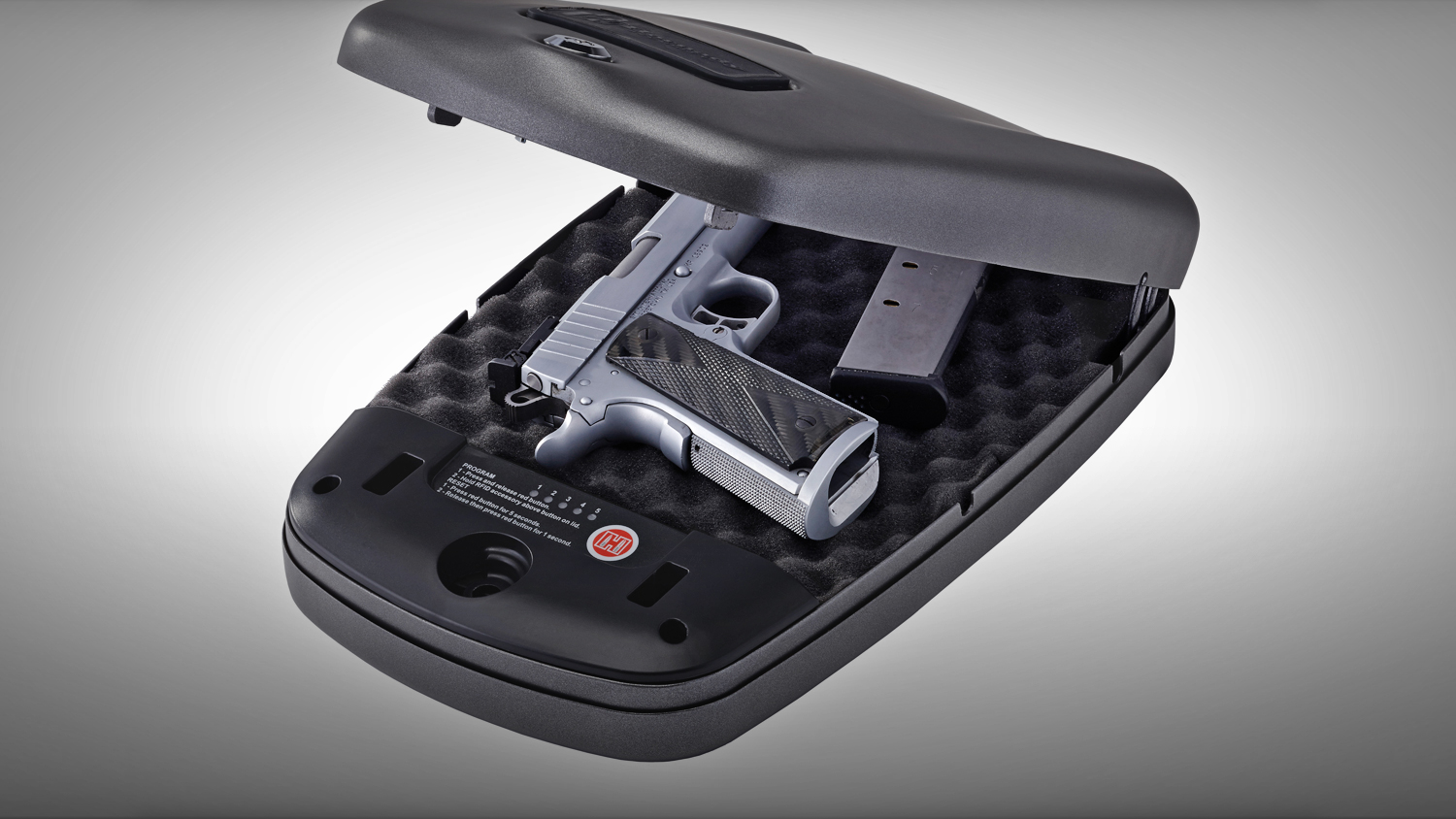 We won’t linger on the details too much: Suffice it to say that we found virtually everything perfected with the RAPiD® Safe. For starters, and unlike most predecessors, it really is rapid. With just a little practice—and yes, you should absolutely practice with a device like this as with all other aspects of firearms use—a defensive pistol can be retrieved in under two seconds. Yes, you read that correctly—actually retrieved. Using any one of the four supplied RFID “keys” (two stickers, a wristband and a key ring [or pendant] fob), you swipe a clearly marked roughly 2.6 cubic inch volume of space, and the trim clamshell opens with alacrity.