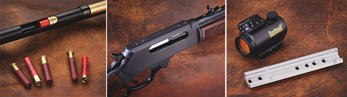 A century of “fast-forward” and right clever thinking gets us to the handsome, versatile 20-inch Henry Repeating Arms shotgun. Borrowing from the company’s updates to Benjamin Tyler Henry’s 1860 design, a .45-70 rifle-length action lends the dimensions needed for .410. The result is an immensely strong, soft-shooting and versatile shotgun.