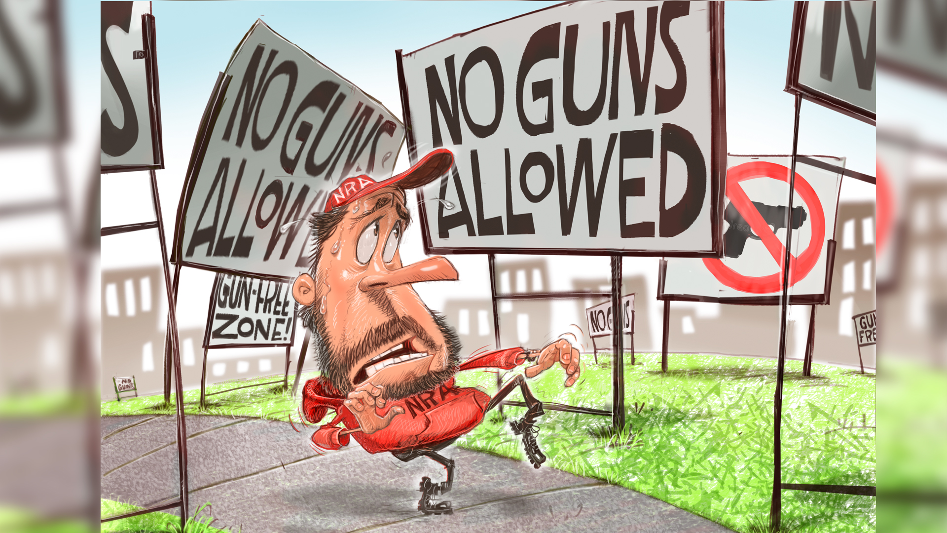 Or, to render it in familiar terms: First, you make it illegal to carry a gun in a “sensitive” place. Second, you assume that all places are “sensitive.” And, presto, there you have it! A near-total prohibition on the right to bear arms.