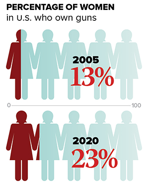 The growing female ownership is also reflected in marketing materials, social media and even the designs of weapons and accessories by gun companies.