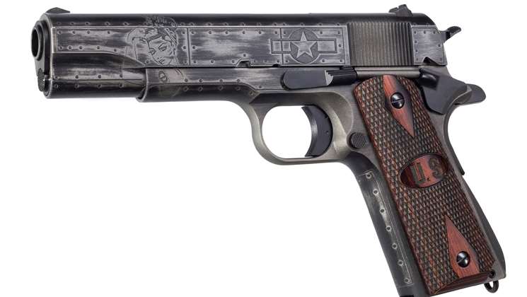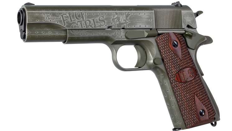 The second is called the Victory Girls custom 1911, offering a design that pays tribute to the women (think Rosie the Riveter) who stepped into plants across this great nation to carry on the manufacturing process while many men were overseas fighting. The slide is marked with “rivets” and an etching of Rosie flexing her arm. This effort has proven to reach a market greater than just that of collectors: women, who might have once been timid about firing a ,45 ACP, have taken the step up to a 1911 and are buying this model in droves.