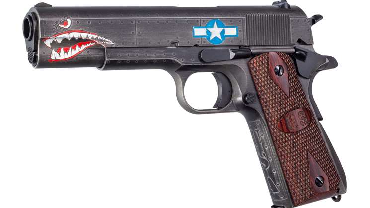 The fourth in the series is the Squadron custom 1911, and its design harks back to the trend in which pilots often painted custom graphics on their planes to personalize them a bit. The Squadron 1911 includes a graphic of a shark’s mouth on the front of both sides of the slide, in homage to the P40 Warhawks of the World War II era.