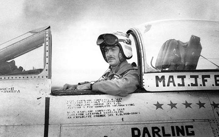 USAF Captain James Jabara would fly the F-86 to triple ace status just four days later. Like Major Bolt, Jabara had World War II combat experience and air-to-air victories, though he had not reached ace. He was a relatively early jet pilot, flying the F-80 “Shooting Star” in 1948 before transitioning to the Sabre. Jabara arrived in Korea in December 1950 but did not score his first victory until early April. Three more followed in quick succession, and when his unit rotated back to the United States, he requested a transfer in order to remain in Korea. On May 20, 1951, his gambit paid off in a “MiG Alley” engagement where he became the first jet ace, and was later awarded the Distinguished Service Cross (precursor to the Air Force Cross).