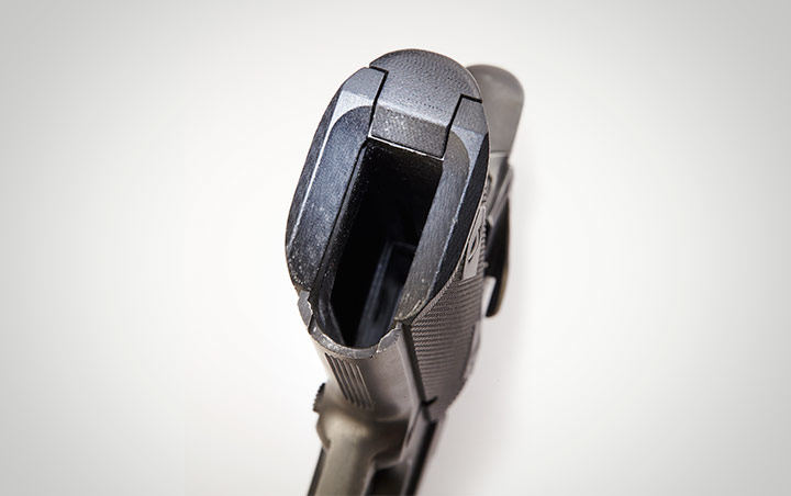 A note here: There are lots of ways to skin this cat in the 1911 world, with sound options from many manufacturers, but they all have the same potential downfall—most metal versions simply will not fit non-milspec guns without gunsmith attention. We’ve never encountered this problem with a Hogue. It’s a handsome, crafty value.