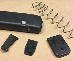 Still, watch them: We have seen smaller parts of the moldings give way on the underside and compromise the mating of the spring with the follower. Metal single-stackers have given out, too. Such failures are easy to see by comparison (and often revealed in the “rattle test” prior to disassembly), though some variations are designed-in changes, not breakage, and close inspection is needed to discern which is which. It’s one more reason to have multiple samples for immediate, direct comparison, and to keep a few spares around.