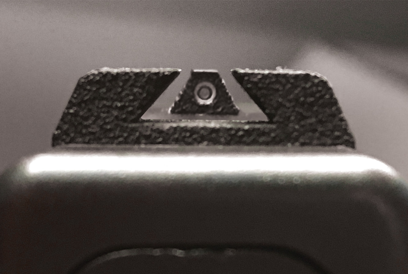 The set currently resident on a G19 reached us by way of Timothy Kraft, avid shooter and PhD Professor of Vision Sciences and Neurobiology at the University of Alabama (Birmingham). The good doctor, not to put too fine a point on it, has something here. His explanation, we’re sure, will be clearer than ours: "The way a traditional gun sight works is all very disconnected. In order to get a good shot off, you have to visually scan the gap between the front post and rear sight on the left and equalize that to the gap on the right, then align all that with the center of the target. It is too much for the eye and brain to process."