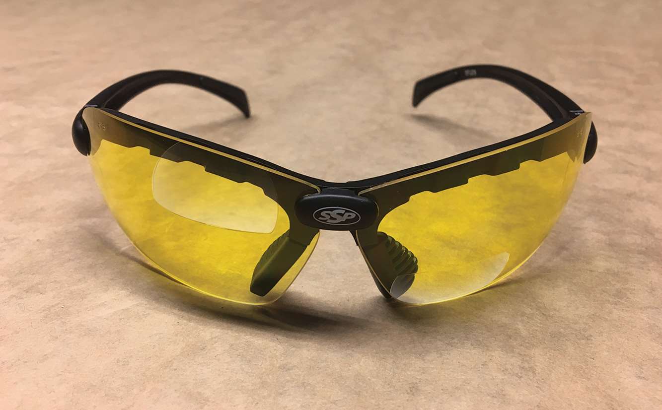 Specialized Safety Products (SSP) of Moses Lake, Wash., may have the whole mess very cleverly on the run. Starting with the rugged polycarbonate and 100-percent UVA/UVB protection, they put separate lenses in front of each eye, but add a “cheater” bifocal panel that is user-positionable.