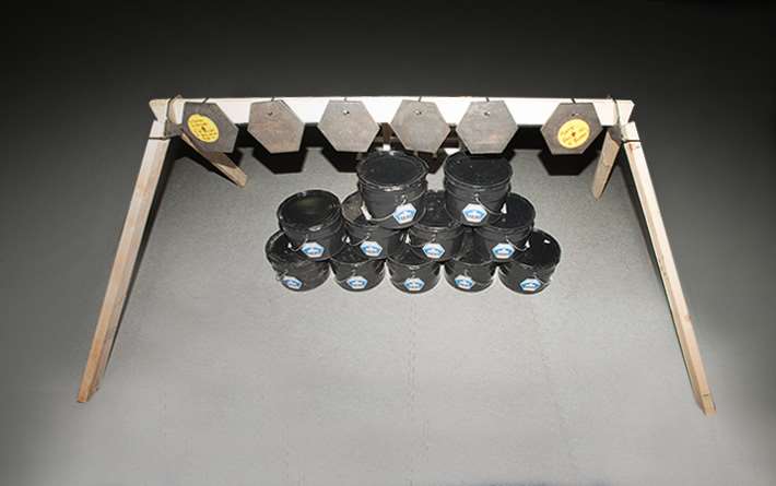 And now, a single person can load one in his or her (tiny) car, set it up in about three minutes and plink away ad infinitum for $299 (free shipping, to boot). Rather than 225- to nearly 400-pound (and $900 to roughly $2000) systems that are great, but essentially a team proposition, the 44-pound “Bucket” puts six hexagonal plates and their “hangers” in a steel bucket. Two clever brackets complete the toolless set up: In combination with structural components you cut from readily available 2x4s, you’ll be shooting in pretty much no time.