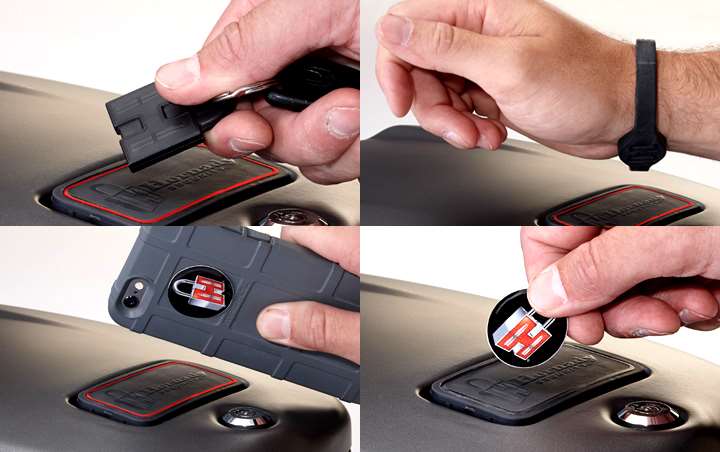 We won’t linger on the details too much: Suffice it to say that we found virtually everything perfected with the RAPiD® Safe. For starters, and unlike most predecessors, it really is rapid. With just a little practice—and yes, you should absolutely practice with a device like this as with all other aspects of firearms use—a defensive pistol can be retrieved in under two seconds. Yes, you read that correctly—actually retrieved. Using any one of the four supplied RFID “keys” (two stickers, a wristband and a key ring [or pendant] fob), you swipe a clearly marked roughly 2.6 cubic inch volume of space, and the trim clamshell opens with alacrity.