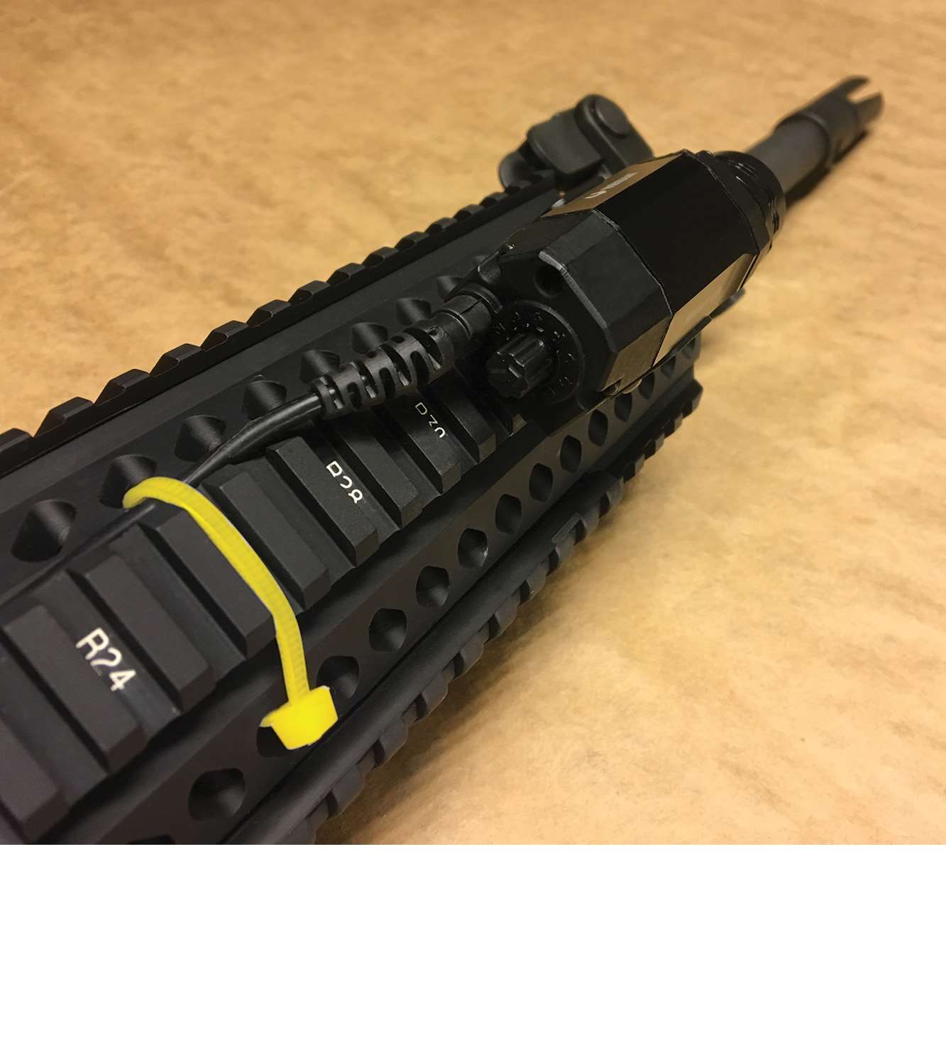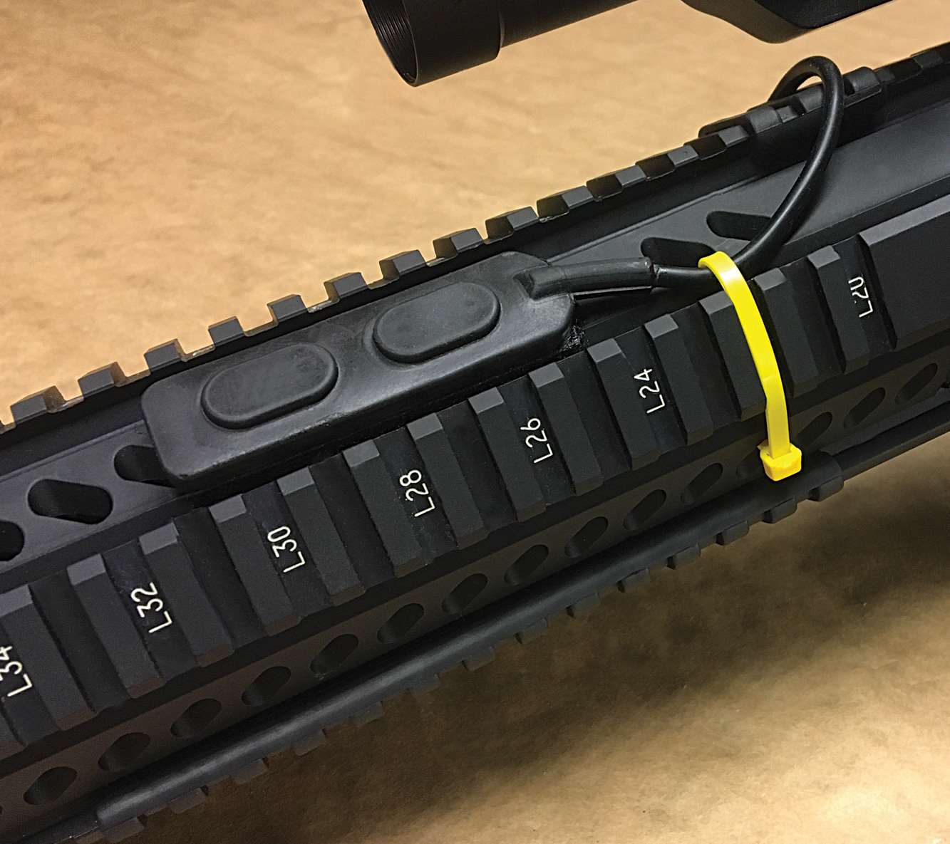 The back of the unit mounts a 10-position rotary switch which, in combination with the two-button remote switch (that’s where the “RS” comes from), gives the X5L an incredible variety of usage modes. Settings on the switch allow both buttons to work one light source (so it doesn’t matter which button you hit) in both momentary and constant “on,” both light and laser (again, both momentary and constant), or “on/off” of either independently. As if that weren’t enough, a programming mode allows strobing to be added to all settings of either or both illuminators. Your programming gets stored too, so it’s available as set for any subsequent use.