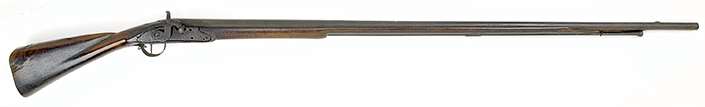 Pvt. Joseph Barnes was armed with an American cherry-stocked, 20-gauge fowler and a carved powder horn. It is unknown if he was able to get a shot off at the British before he and the rest of his company fell back on Concord that morning, but he survived the opening round of the War for Independence and took his fowler with him to Bunker Hill and numerous other battles over the course of the next few years. He served in the 3rd New Hampshire Regiment, in Capt. William Walker’s Company. His regiment also saw action at the battles of Saratoga, the Battle of Newtown, the Siege of Boston and Valley Forge. His fowler stayed in his family for generations and was eventually converted from flintlock to percussion so that it could continue to provide sustenance for him and his descendants. A true national treasure, it was witness to the opening fight for American independence. Graciously loaned by Tom Grinslade, ASAC.
