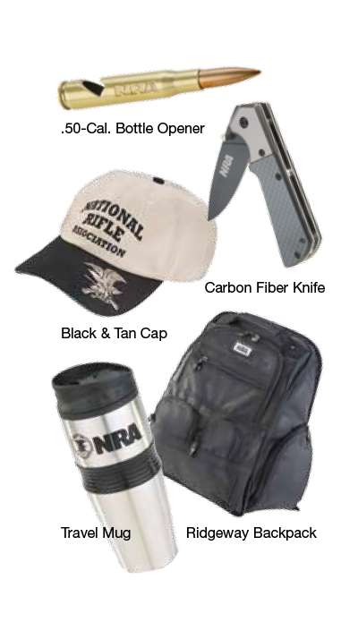 To take advantage of the special offers we’ve reserved especially for you, simply click here and log in with your membership number from the mailing label on this magazine. No matter which of our discount offers you select, you’ll also receive a commemorative gift from NRA as a reminder of your role in saving freedom in the do-or-die elections one year from now.