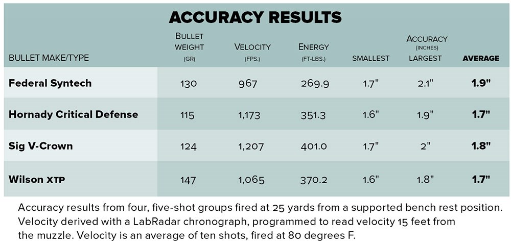 In testing, the KDS9c proved to be accurate. The four-inch barrel takes a small bite out of the velocity of any 9 mm load, but not problematically.