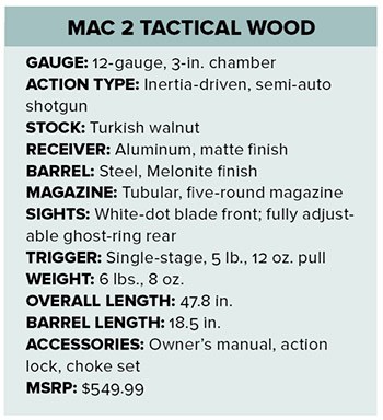 A good shotgun doesn’t have to be exorbitantly priced, especially since the patents on many time-tested designs have expired; for example, the Benelli M2’s robust, rotating-bolt, inertia-driven mechanism with its proven track record has inspired dozens of modern clones. However, originals aren’t always copied well, and the result is sometimes a product that simply doesn’t function as intended. Therefore, the key to a good clone isn’t the original design so much as the standards of those recreating it. SDS Imports has gained a stellar reputation for getting it right and has worked with several Turkish companies to bring products of this sort to the U.S. market. One of the latest is the MAC 2 Tactical Wood 12-gauge shotgun, a retrograde shotgun drawn from the influence of the venerable Benelli scattergun.