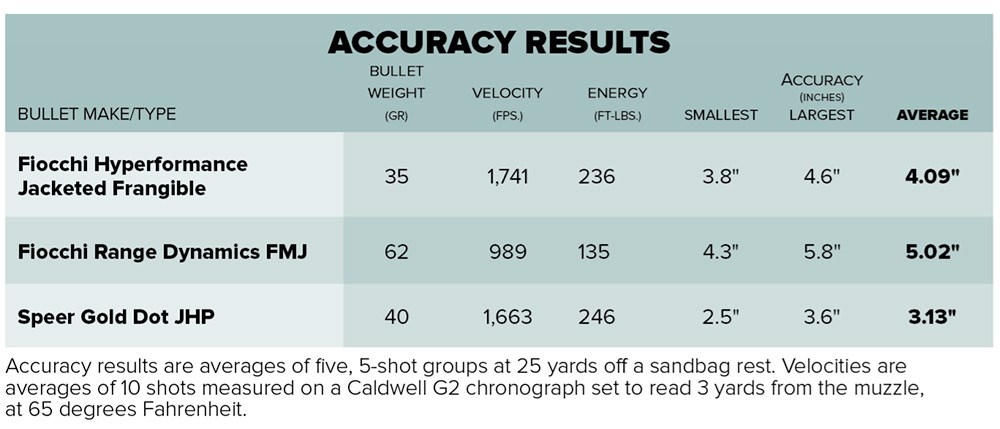 As Fiocchi has been bringing 5.7 ammunition to the U.S. market in droves, I packed my bag with two of its newest offerings. For speed, I selected its 35-grain Hyperformance load, which features a frangible polymer-tipped bullet. Steel would be on the menu, and for safety’s sake, this was a smart move. On the other end of the spectrum was the company’s subsonic Range Dynamics load, which is built to deliver a heavy (for caliber) 62-grain pill below the speed of sound. These are sure to take away that bark associated with the 5.7x28 mm and make it ideal for use with a suppressor. Lastly, I chose a new twist on an old favorite, Speer Gold Dot.