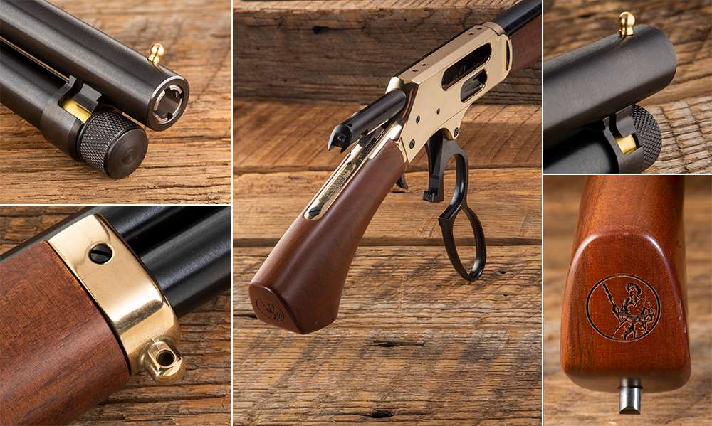 As the name implies, the Brass Axe features that highly polished brass receiver that is deeply associated with the original Henry rifle and today’s modern variants. This finish pops nicely against the blued-steel barrel and the handsome American walnut furniture, creating a slick-looking package indeed. You can also choose a matte blued-steel finish for a subtler look.