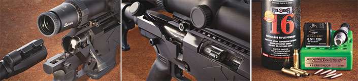 That same “shooting time” brought some unexpected complexities. A host of factory munitions performed modestly until break-in was completed. (“Nuts And Bolts” has what we’d suggest are crucial details, mainly at the courtesy of long-range genius and many-time national champion rifleman David Tubb.) In the end, performance from the MVP was very promising, as well as steadily improving: 10-shot groups of hand-loaded ammunition stayed under MOA, and as small as .833 inch. Shorter shot sequences were similarly encouraging, with three-shot groups regularly between .151 and ~.220, and five-shot strings—including factory Sig Sauer “Elite” 140-grain—under .45 inch. The soft recoil and flat trajectory of the 6.5 mm lived up to their reputation.