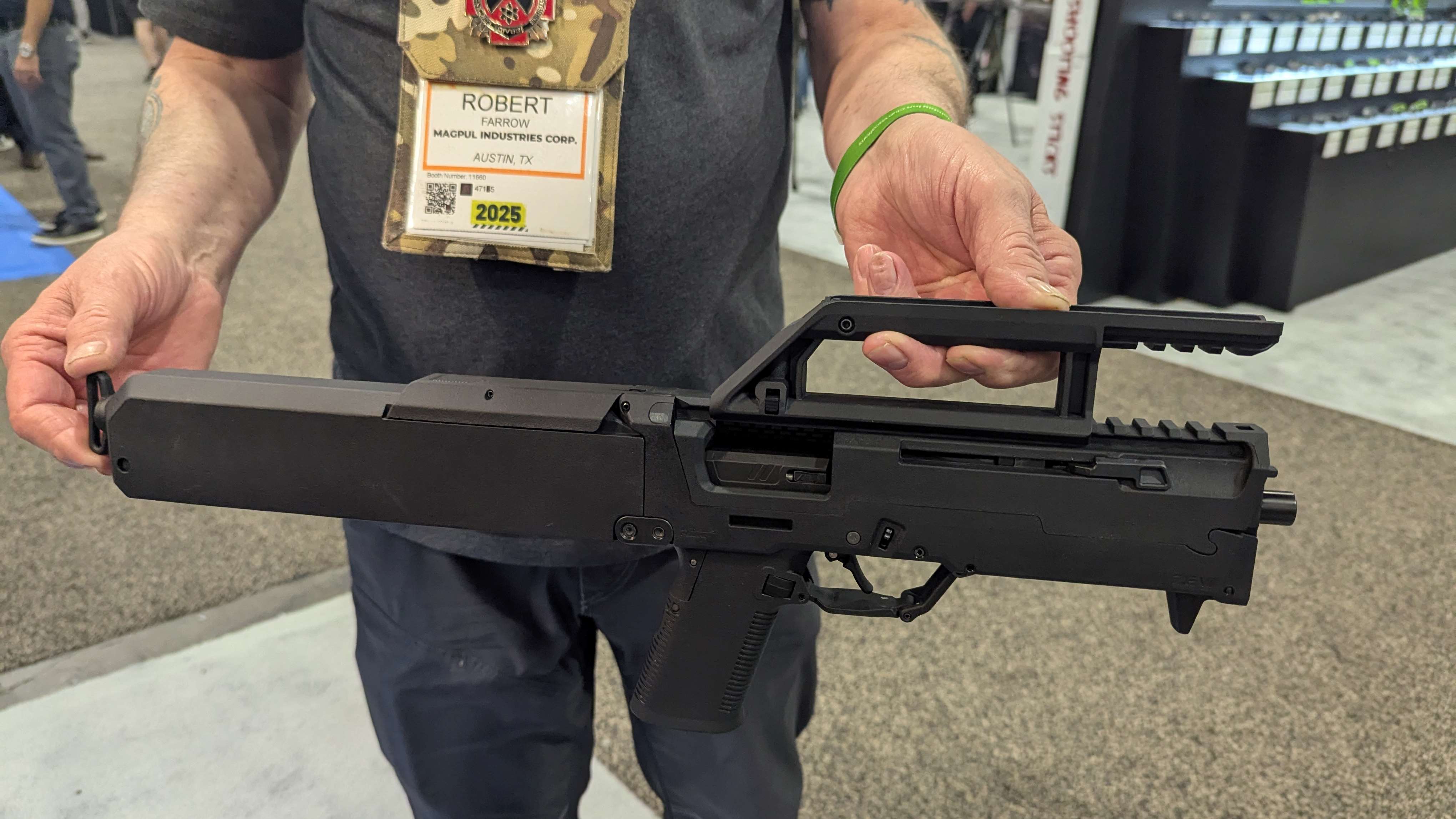At every show, a handful of products give us that “Wow, that’s, uh … different” buzz. Some of these are true developments trying to change norms. Some are just to get attention—Hi-Point, for example, put a shovel handle on their 10 mm Model 1095 carbine, which they know is ridiculous, but people definitely stopped to look at it and therefore to look at the gun in its usual configuration as well.