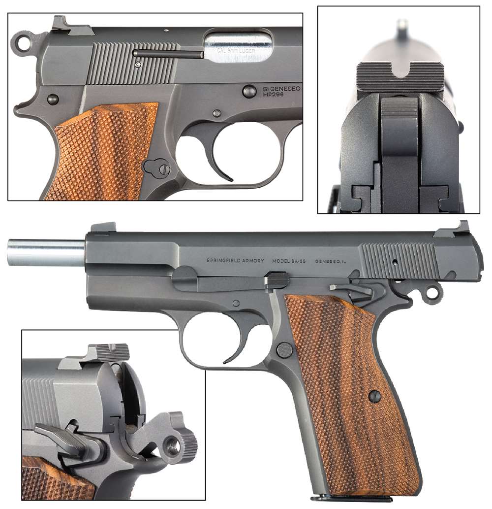 Improvements start right at the top of the SA-35, with proper sights. (The Hi-Power’s originals were more suggestions than actual aiming devices.) Its extractor is external and almost impossible to break. Springfield has installed a larger ergonomically angled safety lever. You use it in the same way you use one on a Model 1911: You carry it cocked and locked and press the safety down as part of the draw stroke. That option alone used to cost a few hundred dollars extra in the old days.