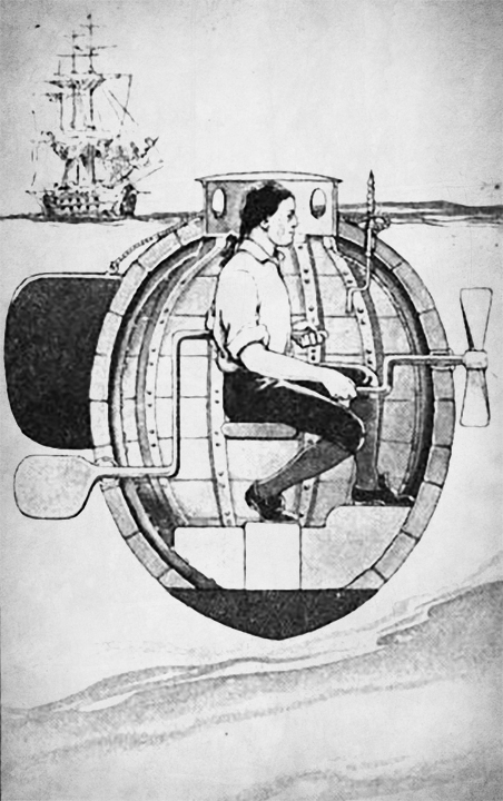 But a recognizable conception of a maneuvering, surface-independent underwater warship would wait many centuries. Leonardo da Vinci expounded a rough version in notes he long kept secret in the late 1400s, and Englishman William Bourne actually advanced to a workable plan a century later. Dutch inventor Cornelius Drebbel built a successful prototype for James I of England in the 1620s, though his craft did not appear to achieve “neutral buoyancy,” the hallmark of the true submarine that allows it to rise or descend as commanded or propelled.