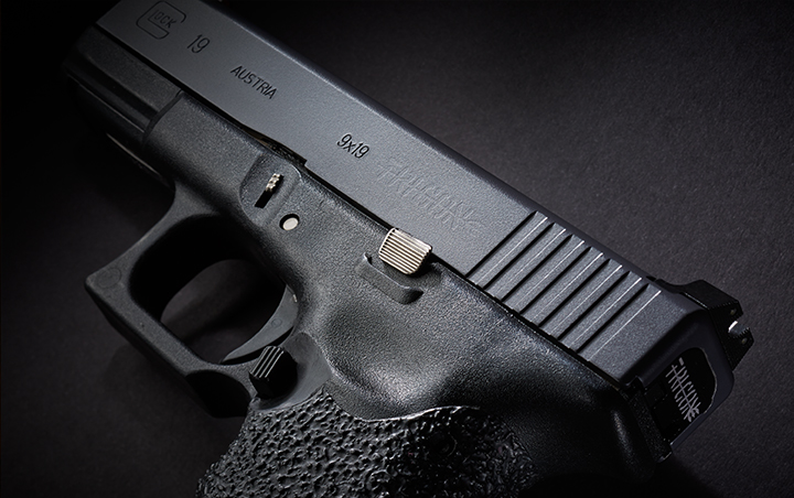 Some purists will balk that the front strap finger grooves are left intact, but we don’t concur. The relief of the trigger guard eliminates the widely (and rightly) decried “Glock finger” that dogs the compact pistols: the serious rub on the second knuckle of the strong hand middle finger particularly after a long shooting session. We prefer the registration of grip that the grooves provide, particularly when the trigger guard relief correspondingly allows a higher grip position—always, always, always a good thing.