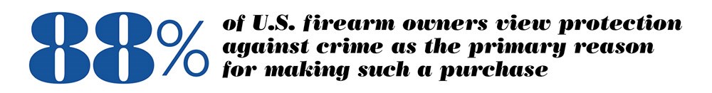 The reasons why so many are exercising their Second Amendment rights have a relatively common denominator. A 2021 Gallup survey found that 88% of U.S. firearms owners view protection against crime as the primary reason for making such a purchase. A further 70% also see target shooting as a key reason, while 56% cited hunting.